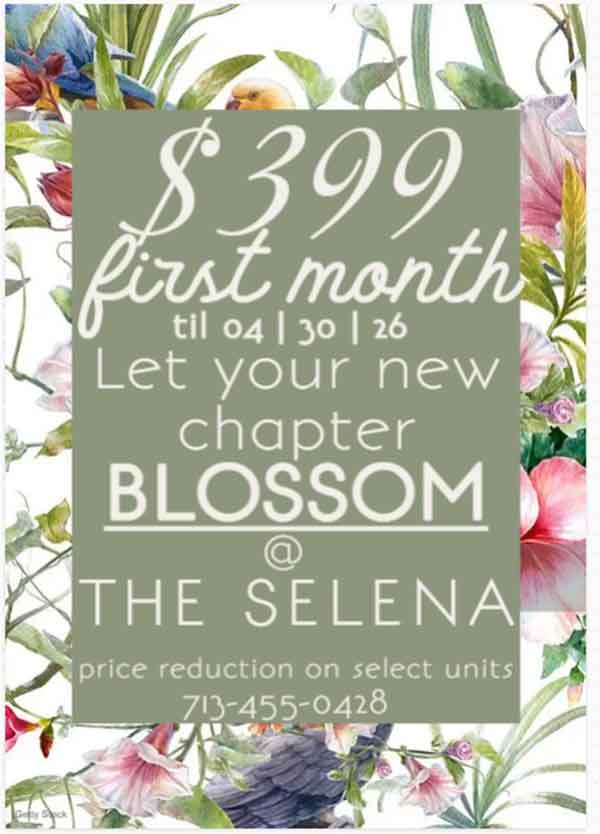 Whether you are looking for a one, two, or three bedroom layout, The Selena Apartments offers versatile options that match your lifestyle. Discover the perfect blend of convenience, community, and comfort right here in Houston. Contact us today to schedule your personal tour and see why The Selena feels like home.